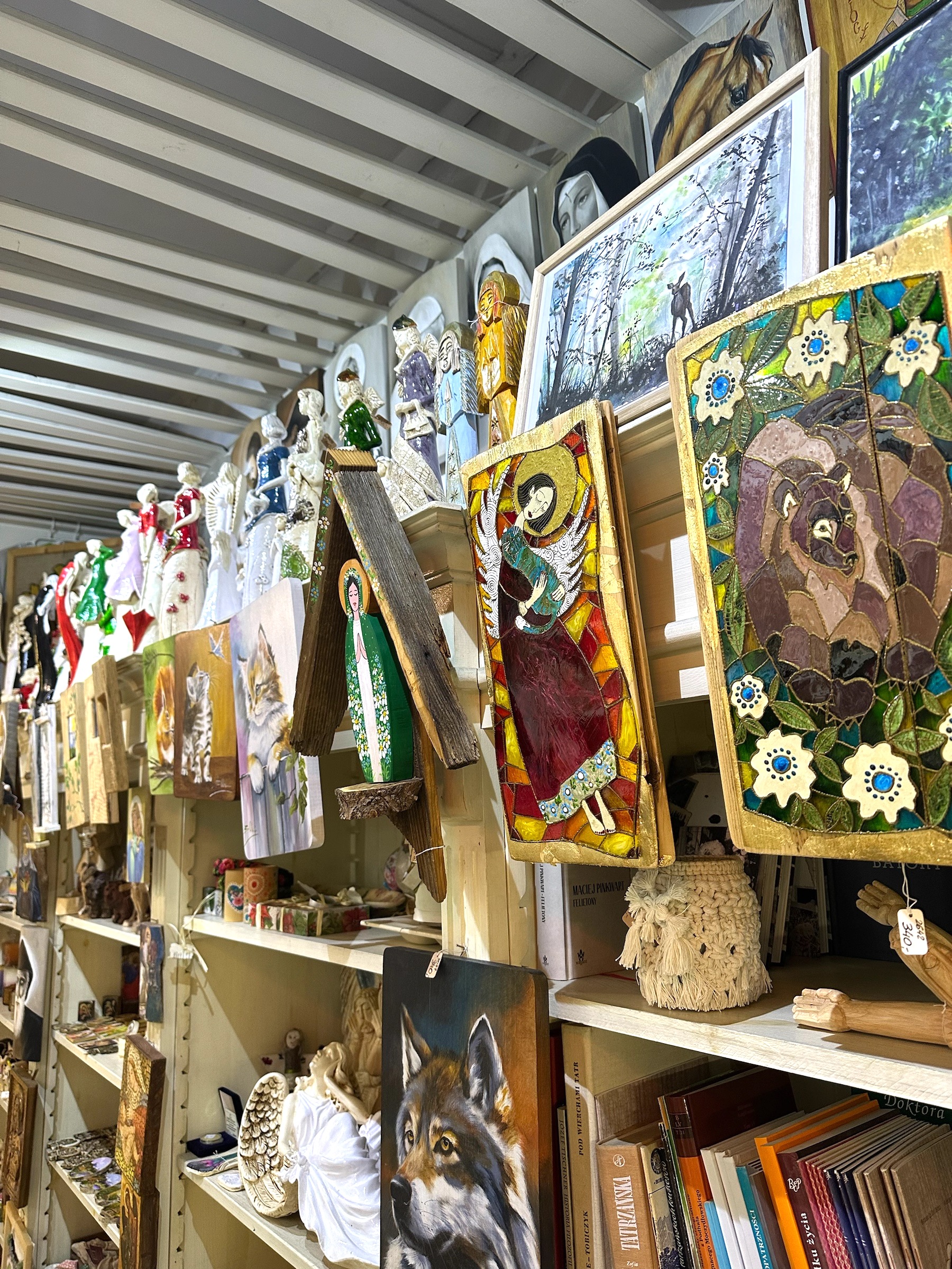Mnóstwo wspaniałego rękodzieła, piękne pamiątki, obrazy, ceramika,itp.