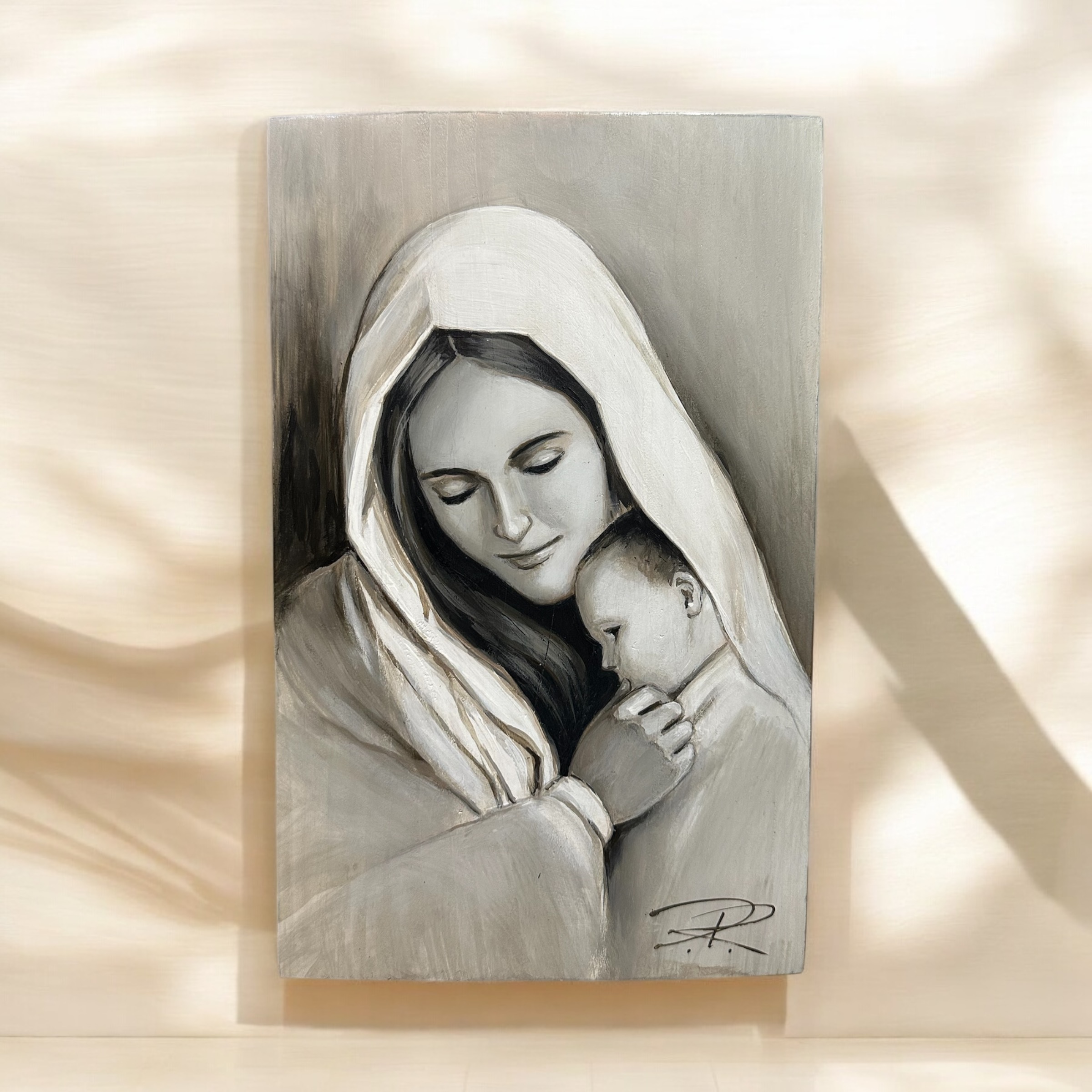 Obraz na desce „Matka Boża z dzieciątkiem”