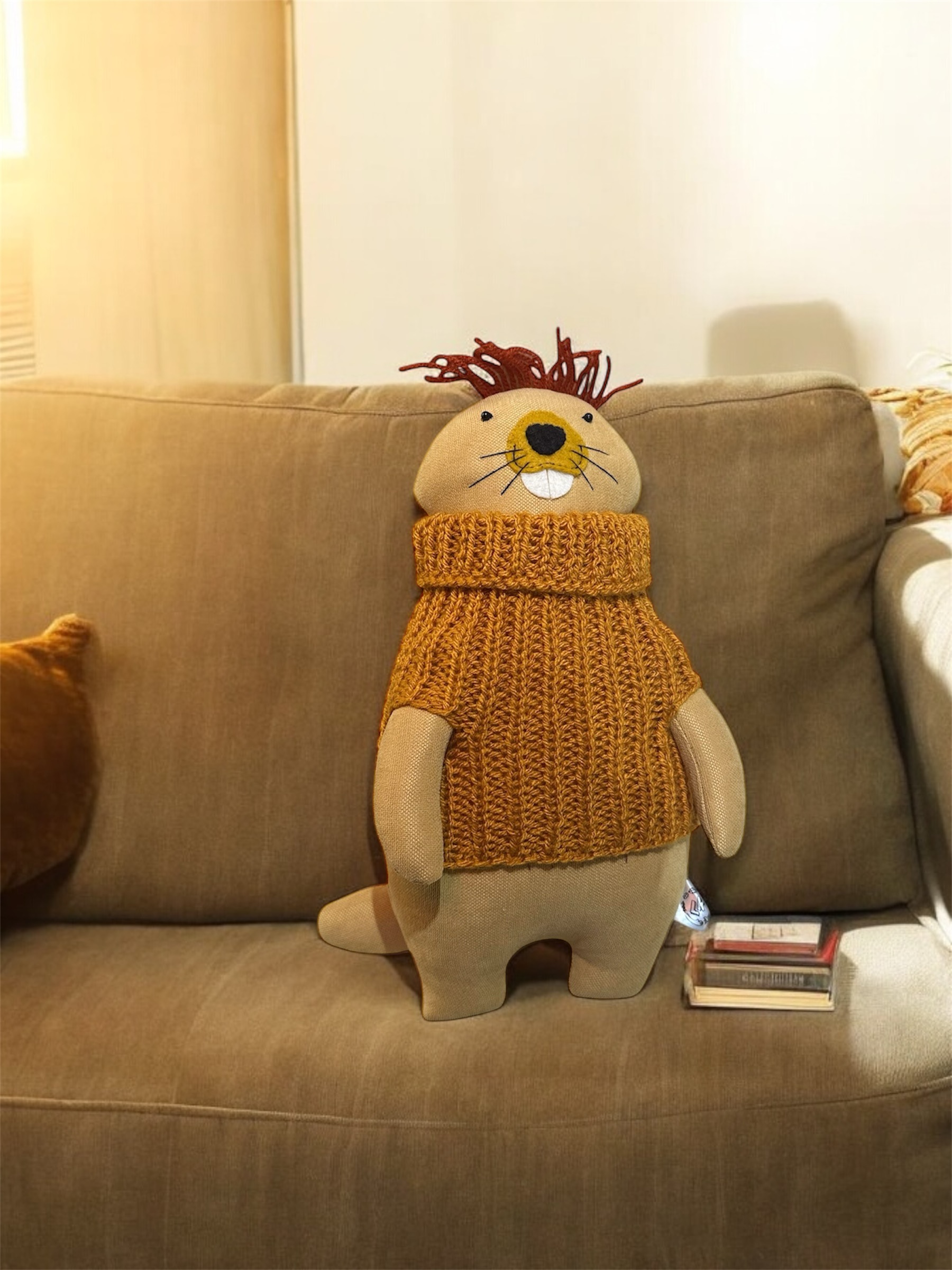 Ręcznie szyty pluszak, wysokiej jakości materiał + kartonowy eko domek, kredka i malowanka.